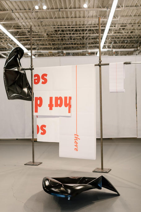 Space/Void was an exhibition hosted and curated by Indianapolis Contemporary (I/C) featuring Berlin-based artist Katja Strunz and Indianapolis-based artist Anna Martinez. The works in the exhibit engage with ideas from Russian Constructivism, with Strunz presenting crumpled and crushed metal car hoods to bring construction and material truth together into moments that are palpable with active destruction.